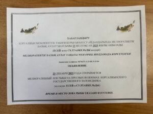2025 жылғы 30 желтоқсан күні таңертең қорықтың табиғи кешендерді қорғау бөліміне Қорғалжын ауданының ТЖД-нан қорық аумағындағы көлде балықшының адасып кеткені